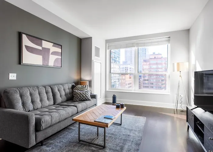 Das 96 m² große Streeterville 1Br W Lake Views Pool Deck Gym Chi-183 liegt im Bezirk Magnificent Mile und bietet Luxus wie ein Hallenbad. Das 1-Zimmer-Apartment befindet sich unter anderem nur 10 Fußminuten von der U-Bahn-Station Chicago entfernt.